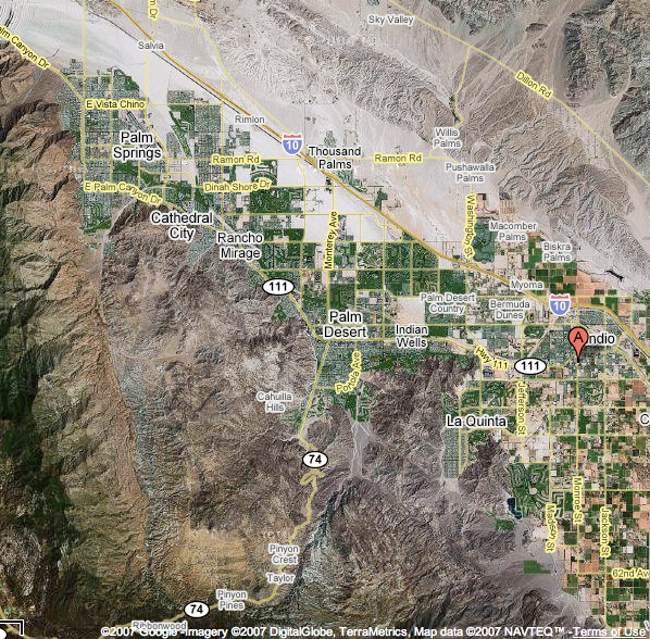 Interstate Highway 10 in the North and State Highway 111 in the south connect Rancho Mirage by land. (get map)